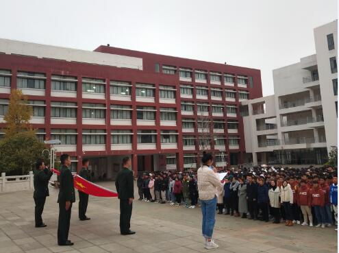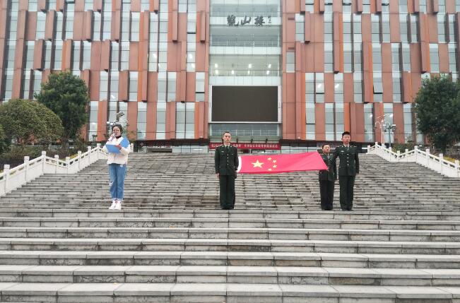 此次活动分为四项。第一项,由主持人介绍此次活动的主要目的,使我们感受到民族精神的气魄所在,意义所在。第二项,迎国旗,全体成员行注目礼。四名身着军装的学生手持国旗四角,踢正步迈向广场中央。鲜红的五星红旗随风飘动,时刻提醒着我们勿忘国耻,不忘初心。第三项,全体师生奏唱国歌。铿锵有力的歌声回荡在整个国土广场,凛冽的寒风中,大家气势昂扬,唱出了机电莘莘学子的爱国热情,也唱出了国土人的爱国情怀。第四项,由18级安管专业杨婕同学进行了精彩的演讲,希望大家可以把握当下,敬仰国旗,热爱我们身在的国家。