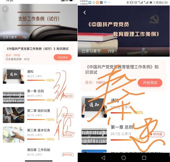 本次学习包括理论知识学习和知识测试两个部分,由各支部分别组织各位党员同志用“云岭先锋”APP学习《中国共产党支部工作条例(试行)》和《中国共产党党员教育管理工作条例》两项重点内容。机电一、二支部全体党员同志均于6月10日前完成此次学习,并在“云岭先锋”APP进行条例知识测试,取得良好成绩。