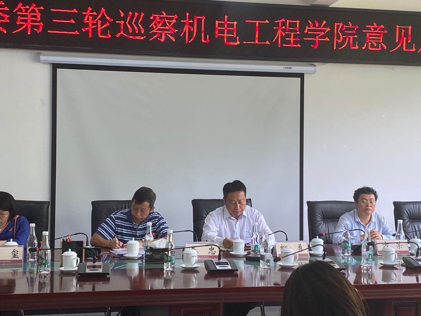 随后,纪委书记刘勇同志做讲话,他肯定了机电学院党政班子领导思想统一,并对接下来的整改工作提出了三条意见建议:一是深刻领会认识巡察工作的重大意义,要强化政治意识,提高政治站位,找清政治上的差距,早发现早报告及时解决问题;二是以点带面,从严从实抓好整改,要做到党政挂帅,态度坚决,靠前指挥以身作则,发挥好“头雁作用”,深挖实改,举一反三,做到事事有回音、件件有落实;三是固化成果,形成长效机制,加强对制度的规范建设,以制度固化整改成果,认真开展自查自纠、主动回头看,做到一件不落下、件件有成效,真正做到党要管党、全面从严治党。