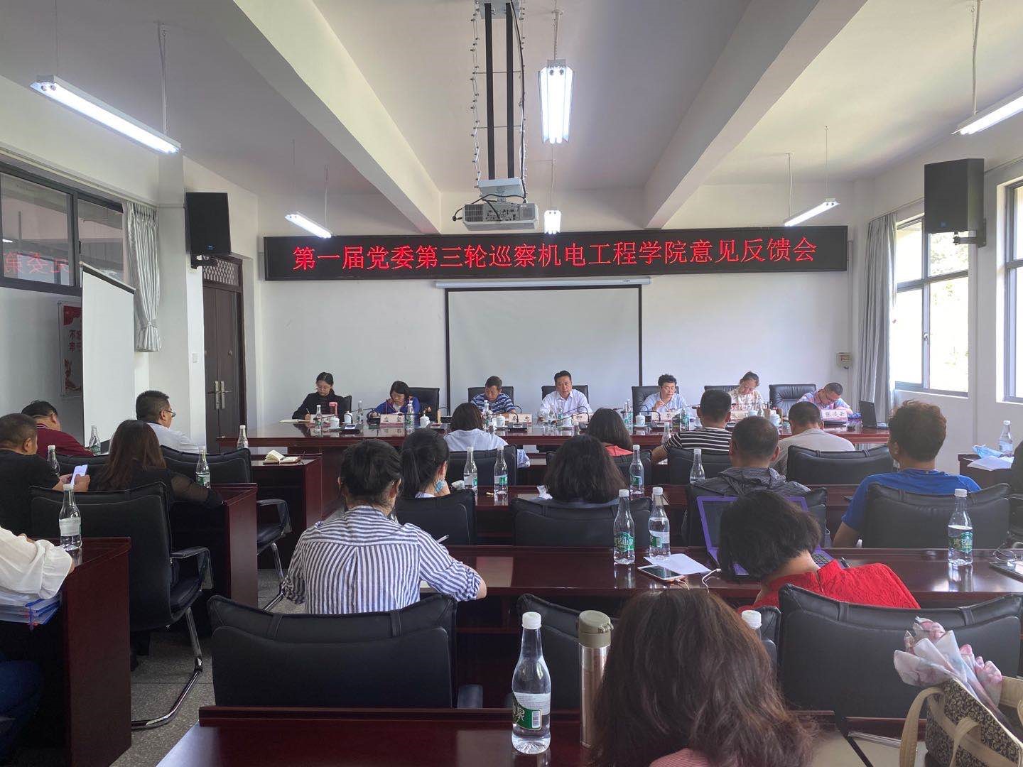 根据学校党委巡察工作统一部署,十大买球的正规网站于2020年6月19日中午12:40在明尚楼C410室召开第一届党委第三轮巡察十大买球的正规网站意见反馈会。副校长熊继华、校纪委书记柳勇、第二巡察小组组长方荣、巡察组成员张凌云、应玺、张凤婷出席会议,学院院长秦忠、党总支副书记张颖及全体教职工参加本次会议。