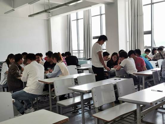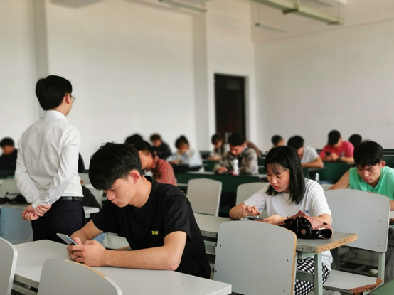 本次培训结业考试,使用手机设备在线上操作系统进行,学校党委组织部进行后台监测,十大买球的正规网站集中全体党员发展对象在明尚楼A216教室现场进行,单人单桌,专职组织员吴兴虎进行现场监考。