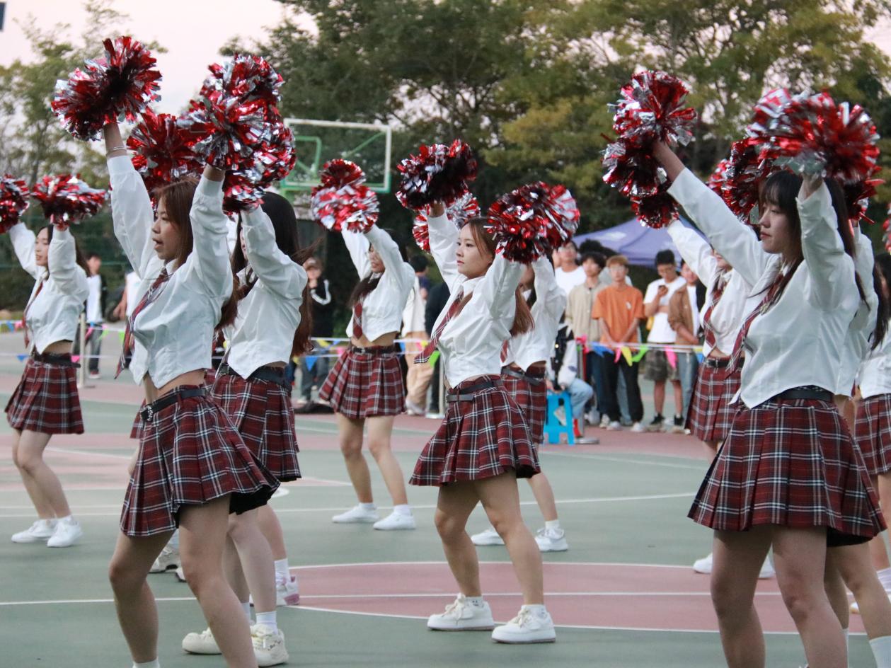拉拉队的成员们身着整齐的服装