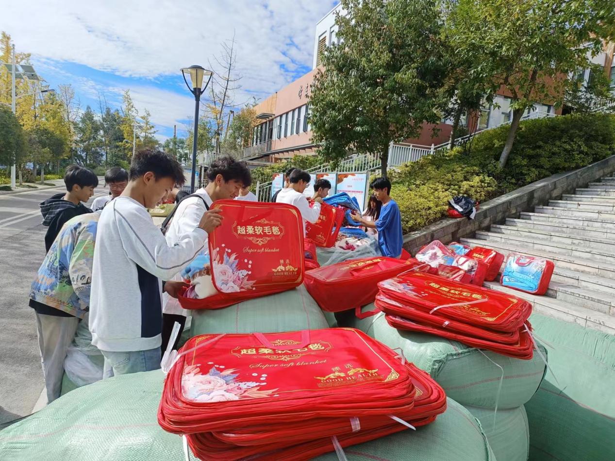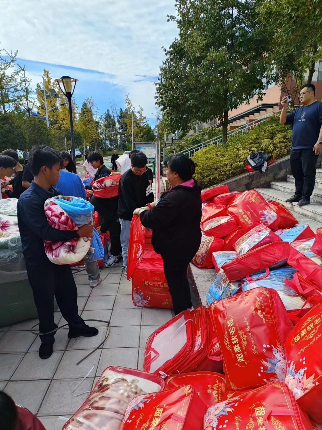 物资发放现场,学院党总支书记王春莲带头整理、核对物资,亲手将一条条毛毯递到受助学生手上,并热心了解受助学生的学习、生活情况。她鼓励所有受助学生要保持积极乐观的生活态度,珍惜大学时光,有困难第一时间向学院反映,学院定会积极帮助大家解决问题。