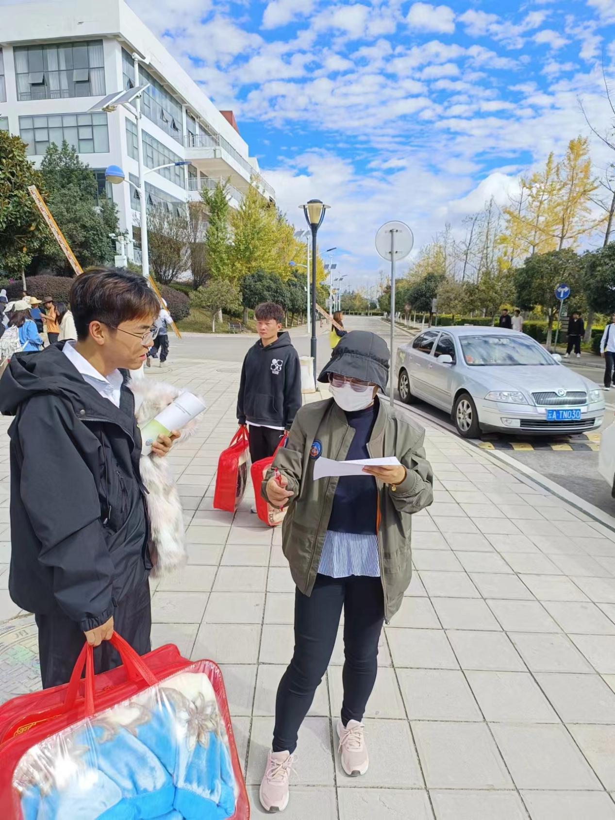 关爱学子做实事,寒冬送衣暖人心。霜降如期而至,眨眼之间,枝头、树梢已染上寒意。为帮助十大买球家庭经济困难学生顺利过冬,让学生切实感受到学院的温暖和关怀,按照学校相关要求,学院组织全体学工团队老师于11月3日向2023级新生们发放了“寒衣补助”。