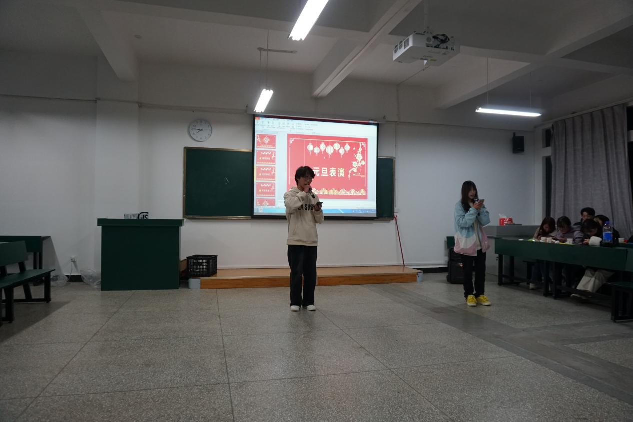 为了增进同学们之间的友谊,丰富同学们的校园文化生活,喜迎元旦,2022级智能控制技术4班与2023级智能控制技术4班于2023年12月27日下午六点半,在笃行楼604举行了元旦联谊晚会。