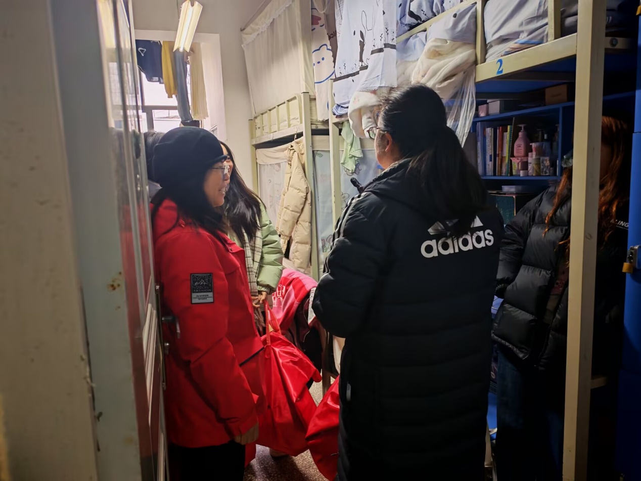 冬意渐浓,温情先行。为切实保障家庭经济困难学生温暖过冬,传递学院关怀,11月19日,十大买球的正规网站党委书记张颖、院长张俊妍带领全院教师,走进绘水苑3栋、5栋学生宿舍,开展2025年寒衣补助集中发放活动。