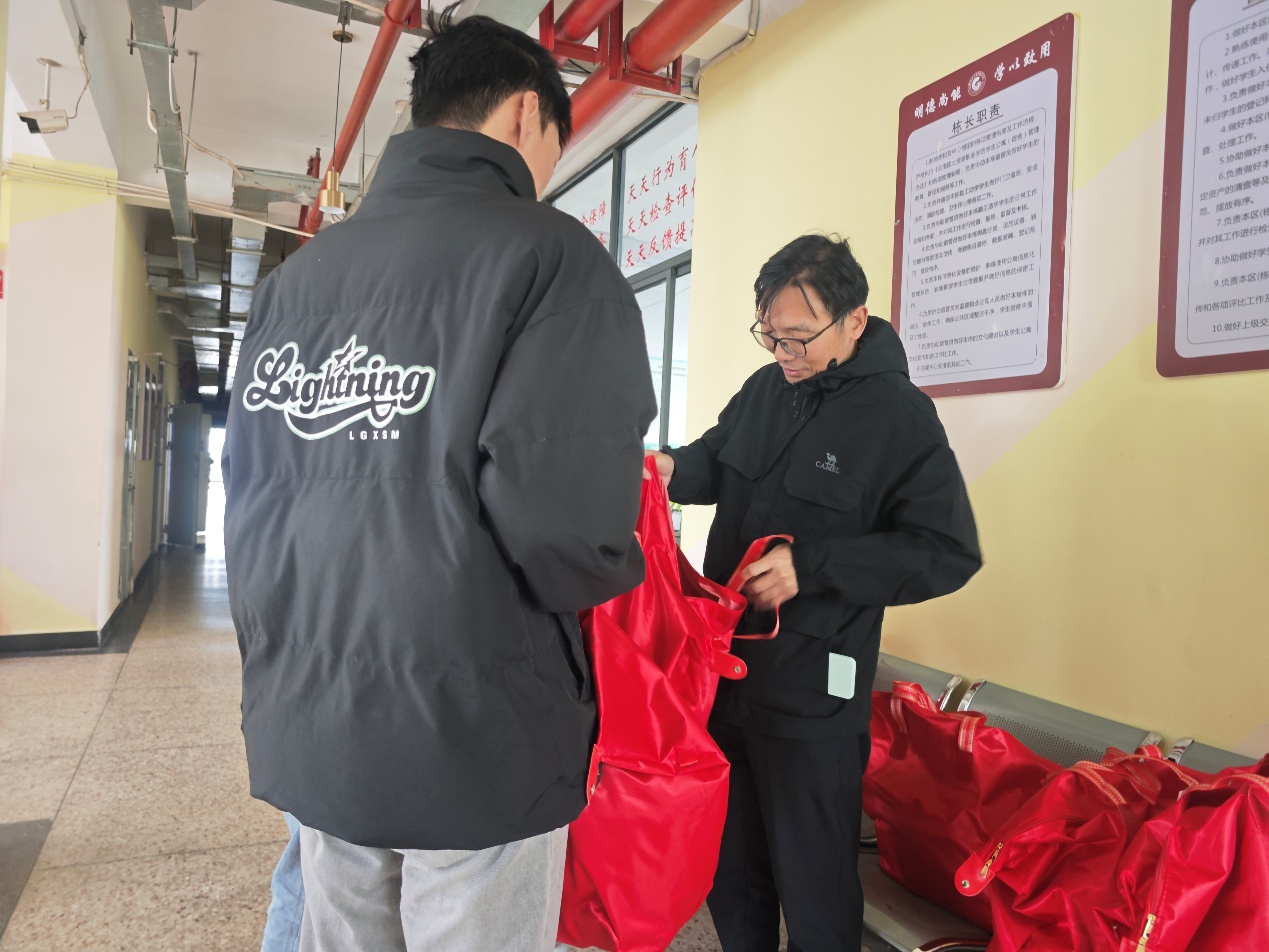 发放现场暖意融融,张颖书记与张俊妍院长带头核对物资、整理御寒物品,亲手将厚实毛毯递到受助学生手中,并细致询问大家的学业进展与生活需求,鼓励同学们珍惜大学时光、勤学笃行。学院教师分工协作,有序完成信息核实、物资登记与发放签收工作。师生们接力传递的不仅是御寒物资,更是学院沉甸甸的关爱。整个发放过程秩序井然,氛围暖心。