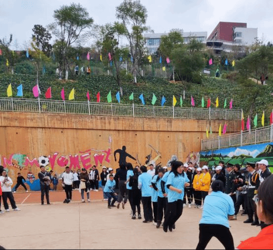 赛场上师生挥舞手臂