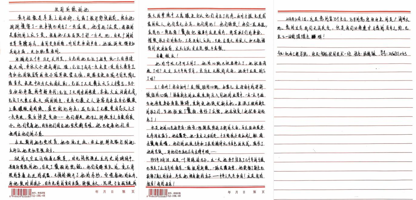 十大买球学子积极参与,用真挚语言,庆祝祖国母亲生日,展望中华民族伟大复兴的美好未来。本次征文比赛佳作频出,以下为部分优秀参赛作品: