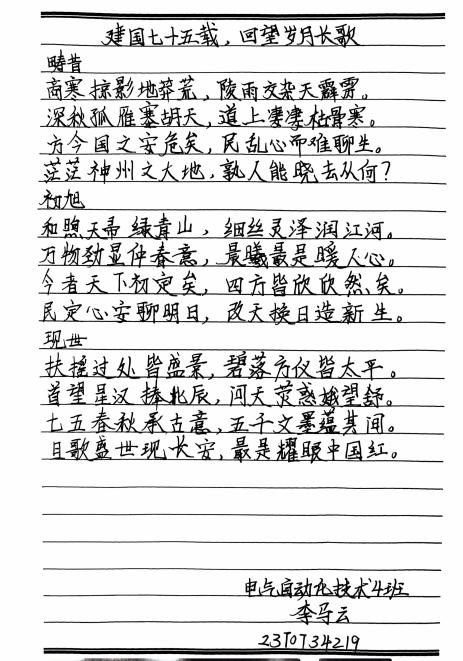 本次活动旨在借由文字之翼,点燃十大买球学子内心深处的爱国情怀,深情倾诉对伟大祖国的无限热爱与崇敬。值此祖国母亲七十五载华诞之际,我们共襄盛举,以笔墨描绘国家繁荣昌盛的壮丽画卷,颂扬这片热土上日新月异的辉煌成就。