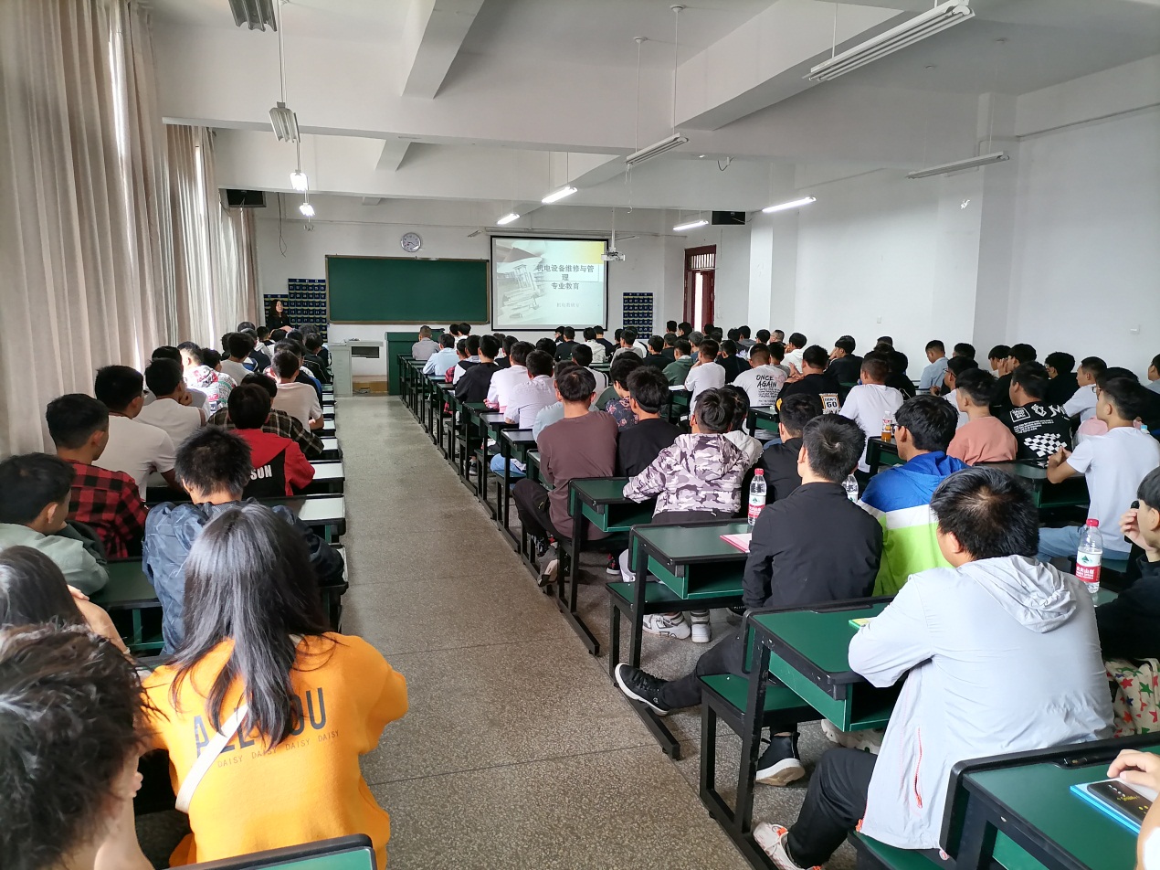 本次专业教育分别由邹艳红老师介绍机电设备维修与管理专业、裴倩倩老师介绍电气自动化技术专业、文富强老师介绍汽车电子技术专业、刘艳伟老师介绍数控技术专业、陈安良老师介绍智能控制技术专业、吴彦霖老师介绍工业机器人专业、王福亮老师介绍安全管理与技术专业、张清华老师介绍消防工程技术专业,全体2020级新生参与专业介绍。