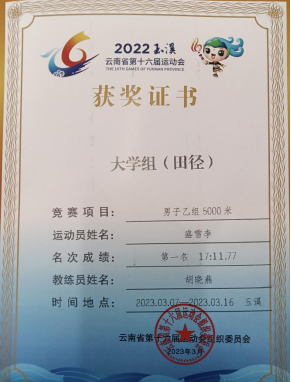 3月10日,十大买球2020级工业机器人专业学生盛雪李以17分11秒的优异成绩获得云南省第十六届运动会大学生男子乙组5000米冠军。