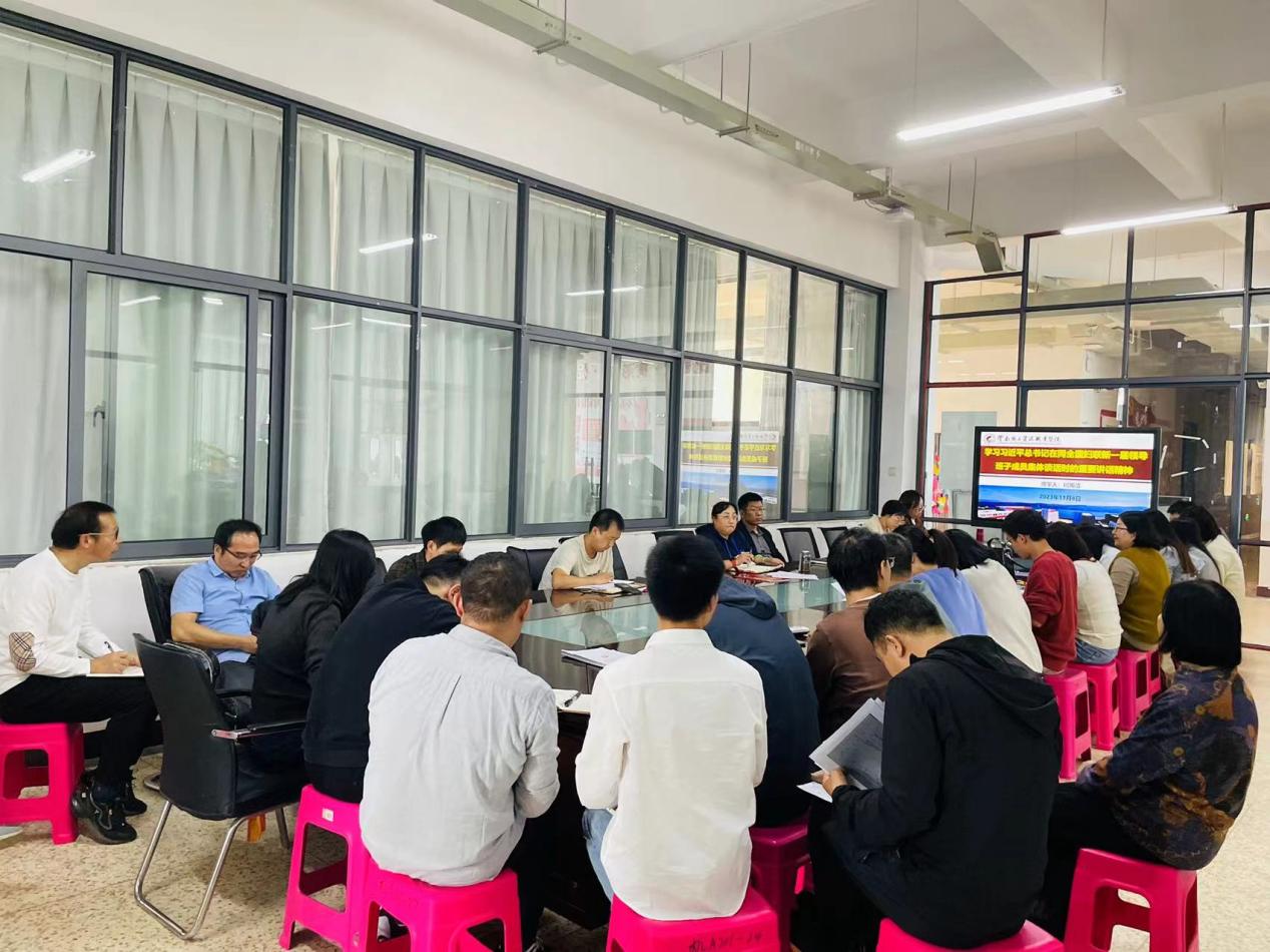 11月8日中午13:00,十大买球的正规网站在明尚楼A201开展了2023年11月份第一次教职工政治理论学习会。学院教师何雨洁、谢亚男、李月婷带领全体教职工先后学习了习近平总书记在同全国妇联新一届领导班子成员集体谈话时的重要讲话精神、习近平总书记在同中华全国总工会新一届领导班子成员集体谈话时的重要讲话精神、习近平总书记对宣传思想文化工作作出的重要指示精神。