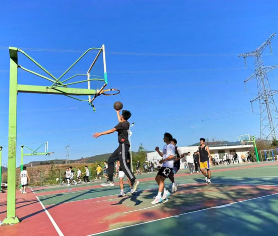 随着裁判的哨音响起,比赛正式开始。双方球员秉承友谊第一,比赛第二的宗旨,在球场上默契配合、奋勇拼搏,运球、投球、断球......,动作丝滑顺畅,实力不相上下,比分互相赶超。双方球员在球场上尽情挥洒汗水,用青春和热血向对手致敬。场下拉拉队气势不输场上,大家大声呐喊助威,兴奋地欢呼着、跳跃着。裁判员严肃认真、公正执裁,不放过蛛丝马迹,保障了篮球赛的公正性和延续性。