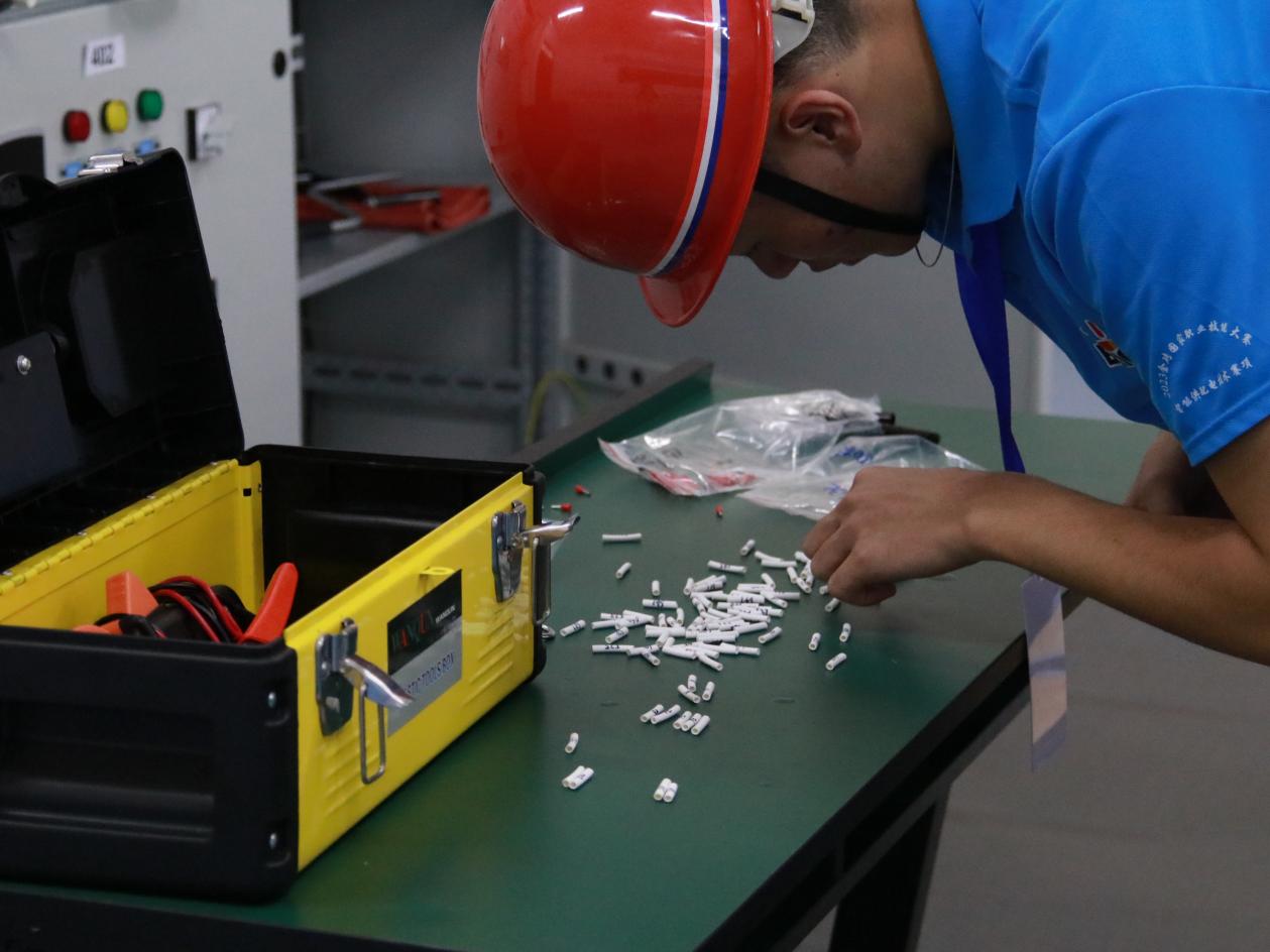 8月26日下午,比赛正式拉开帷幕,选手们根据抽签顺序,依次进入比赛场地。本次大赛共两个比赛模块,模块一包含倒闸操作和智能电力监控系统编程调试。选手需要对操作票、工作票进行规范填写,同时要对智能电力监控系统进行组态软件界面设计和相应数据关联。模块二包含微机保护装置设定、低压配电装置故障设置和故障排查、低压配电装置接线设计及安装、三相多功能电力仪表接线安装及职业素养五个任务。这一模块主要检验选手的动手能力,需要完成装置的变比参数、保护参数及压板投退等的设置、根据低压配电装置故障排查任务流程完成故障排查、低压断路器接线图设计及三相多功能电力仪表接线设计安装。