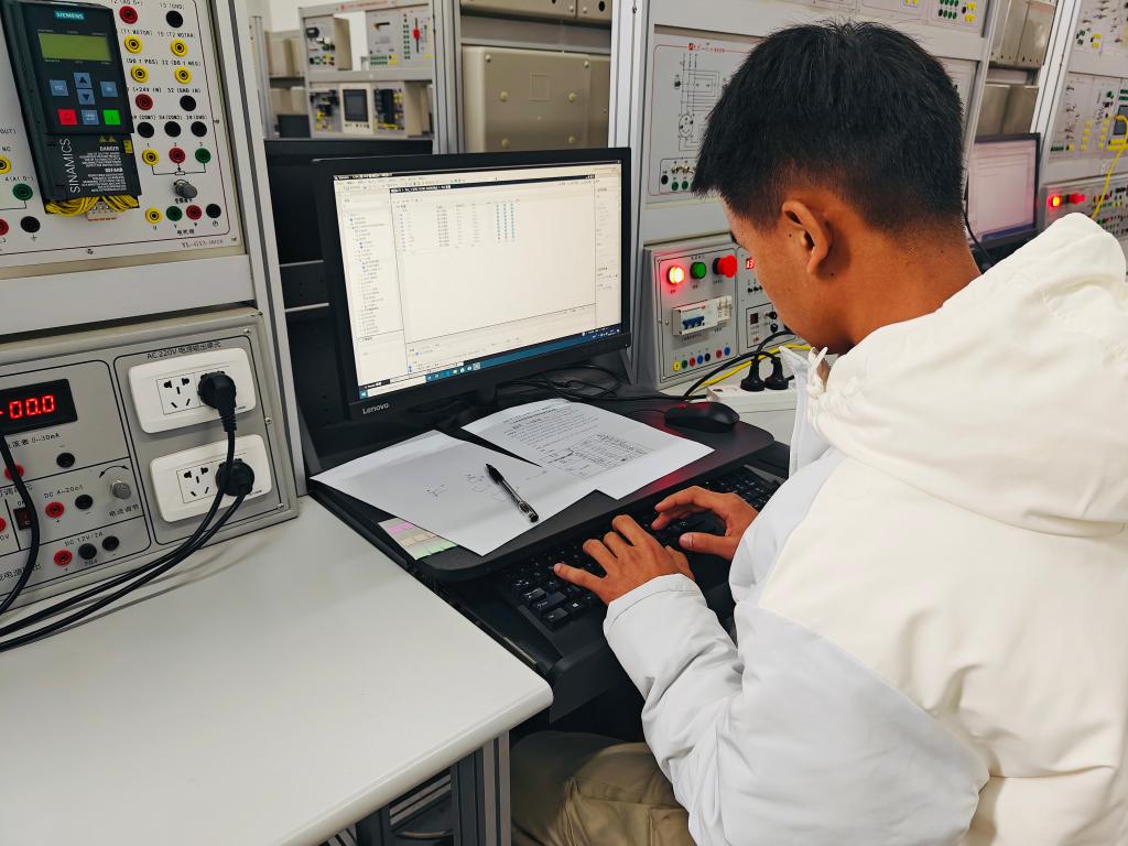 本次竞赛覆盖了电气自动化技术专业的核心知识和技能要求,重点突出专业知识与技术的综合应用。竞赛采用个人赛的形式开展,参赛选手必须在一个半小时内完成工业网络关键设备接线、工业网络智能控制系统编程和调试任务。评委老师严格按照评分标准,对选手参赛过程中的操控单元独立功能完成情况、控制系统整体功能完成情况、故障排除、职业素养与安全意识几方面进行评分。