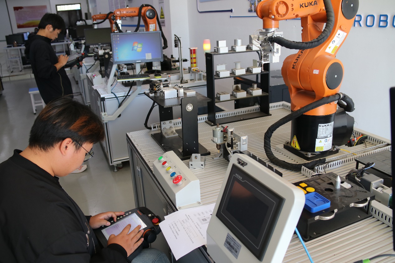赛场上,选手们需将理论与实践紧密结合,创建相应程序,确保机器人能按照工艺要求正确运行。比赛中,选手们全神贯注,动作精准敏捷,充分展现了他们对专业知识的深刻理解和实践能力。
