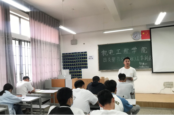 随后,学生会主席团成员蒋枘兵就学生会近期工作进行通报和提醒,希望各班级积极组织同学走出宿舍,参与到学院活动中来。