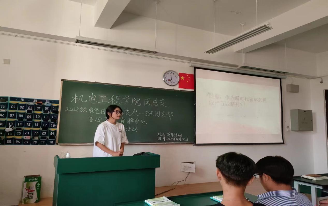 4月20日下午17:10,十大买球的正规网站2022级电气自动化技术1班以“喜迎五四,奋楫争先”为主题,在笃行楼416举行了四月份的主题团日活动。本次活动由副班长段金娈主持,全班同学共同参与。