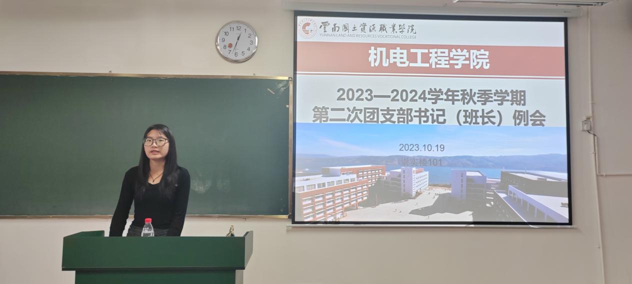 10月19日中午,十大买球的正规网站团总支在崇实楼101开展了2023学年秋季学期第二次团支部书记(班长)例会。本次例会由学院团总支副书记段金娈主持,团总支负责人马玲老师、辅导员全伟东老师、2022级和2023级全体团支部书记和团支部副书记共同参与。