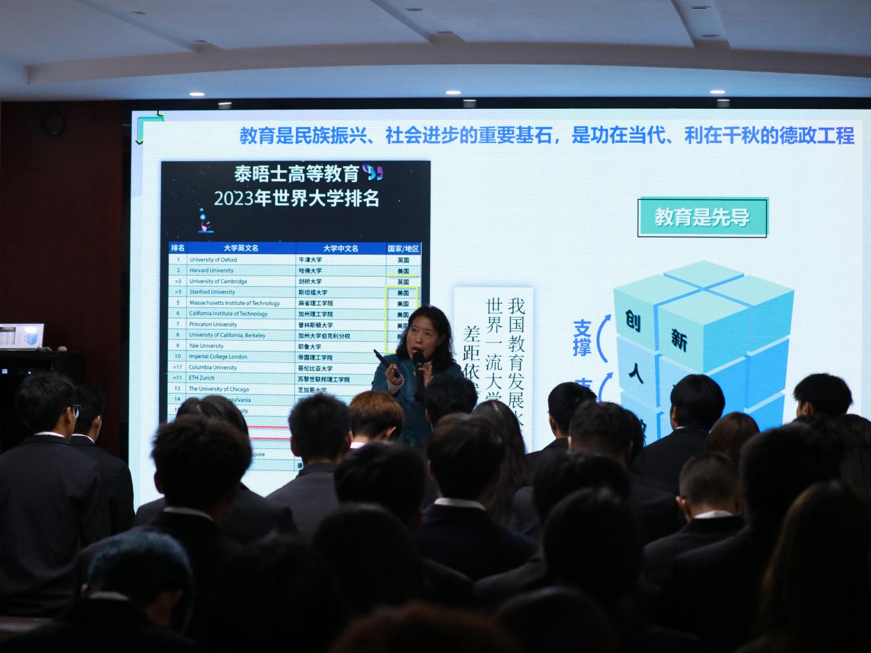 课上,张延星老师从历史演进、世界现代化发展、中国式现代化等方面论述了教育、科技、人才的重要性。她认为,教育是民族振兴、社会进步的重要基石,是功在当代、利在千秋的德政工程;科技是国家强盛之基、安全之要,必须加快科技自立自强;人才是实现民族振兴、赢得竞争主动的战略资源,必须坚持人才引领驱动。