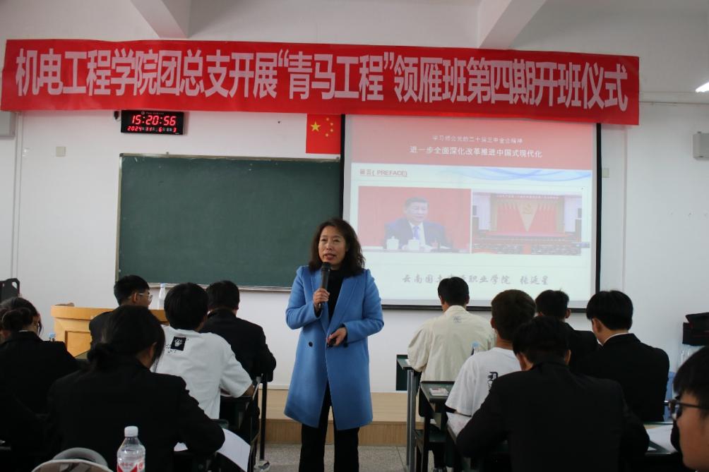 11月6日下午,十大买球的正规网站团总支“青马工程”领雁班第四期第一讲在笃行楼314教室正式拉开帷幕。本次团课有幸邀请到学校党委委员、宣传部部长、马克思主义学院院长张延星老师,以《学习领会党的二十届三中全会精神》为专题,为第四期青马班的全体学员带来了精彩的授课。