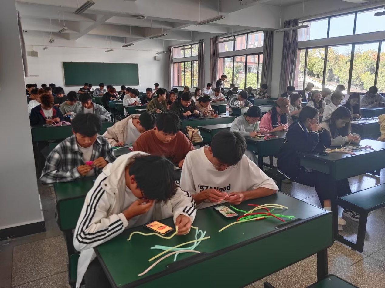 活动当天,同学们满怀热情地聚集在指定场地,现场气氛热烈而有序。活动开始前,团总支组织部负责人进行了简短的开场致辞和扭扭棒使用技巧的说明,帮助初次接触的同学快速上手。随后,同学们有序排队领取扭扭棒材料,围绕“扭转乾坤,乐享创意”的主题,开始了紧张而充满乐趣的创作过程。