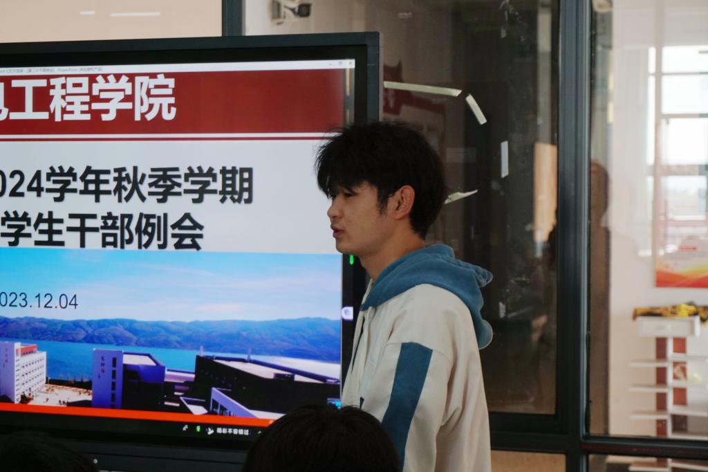 会上,首先由各个部门依次汇报上个月的工作情况。随后,全伟东老师对上月的团学工作进行了总结,指出各部门存在的问题以及改进措施。紧接着,安排了12月份各个部门的工作重点,同时要求各部门积极承办院级第二课堂活动,丰富机电学子的课余生活。最后,他指出:“作为一名学生干部,要时刻谨记自己的身份与责任,聚焦主责主业,明确岗位职责,找准定位,提高服务意识。此外,希望每个部门能够珍惜学院物资,规范物资借用制度,注意细节,责任落实到人,力求将各项工作做精、做细。”