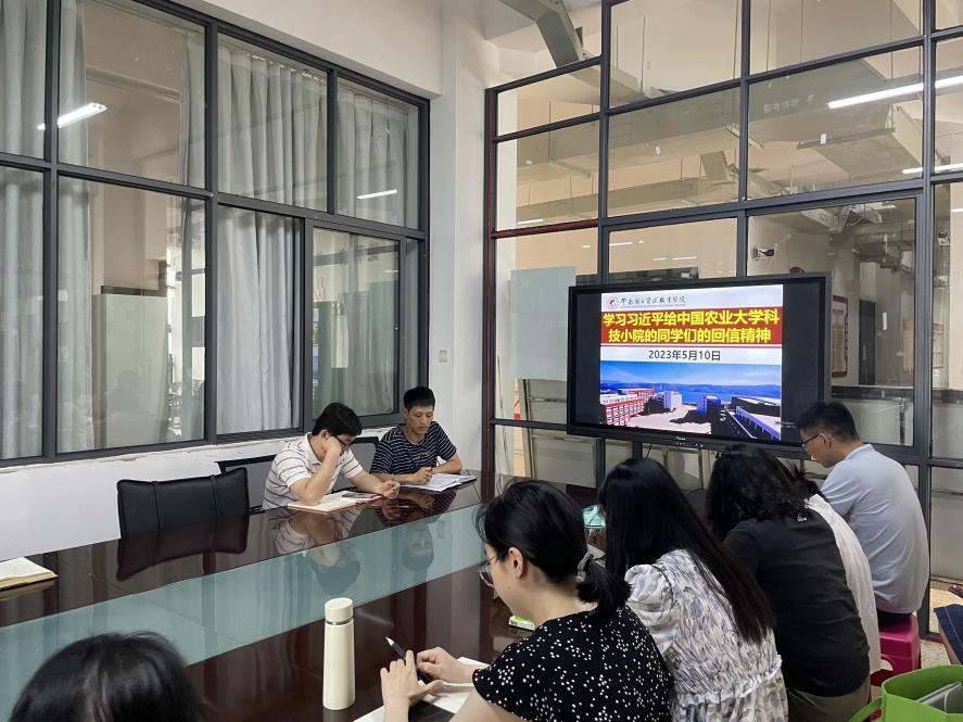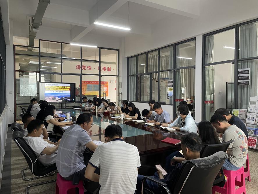 5月10日中午13:00,十大买球的正规网站在明尚楼A201开展了2023年5月份第二次教职工政治理论学习会。本次政治理论学习会由学院副院长陈伟带领全体教职工学习了习近平给中国农业大学科技小院同学们的重要回信精神。
