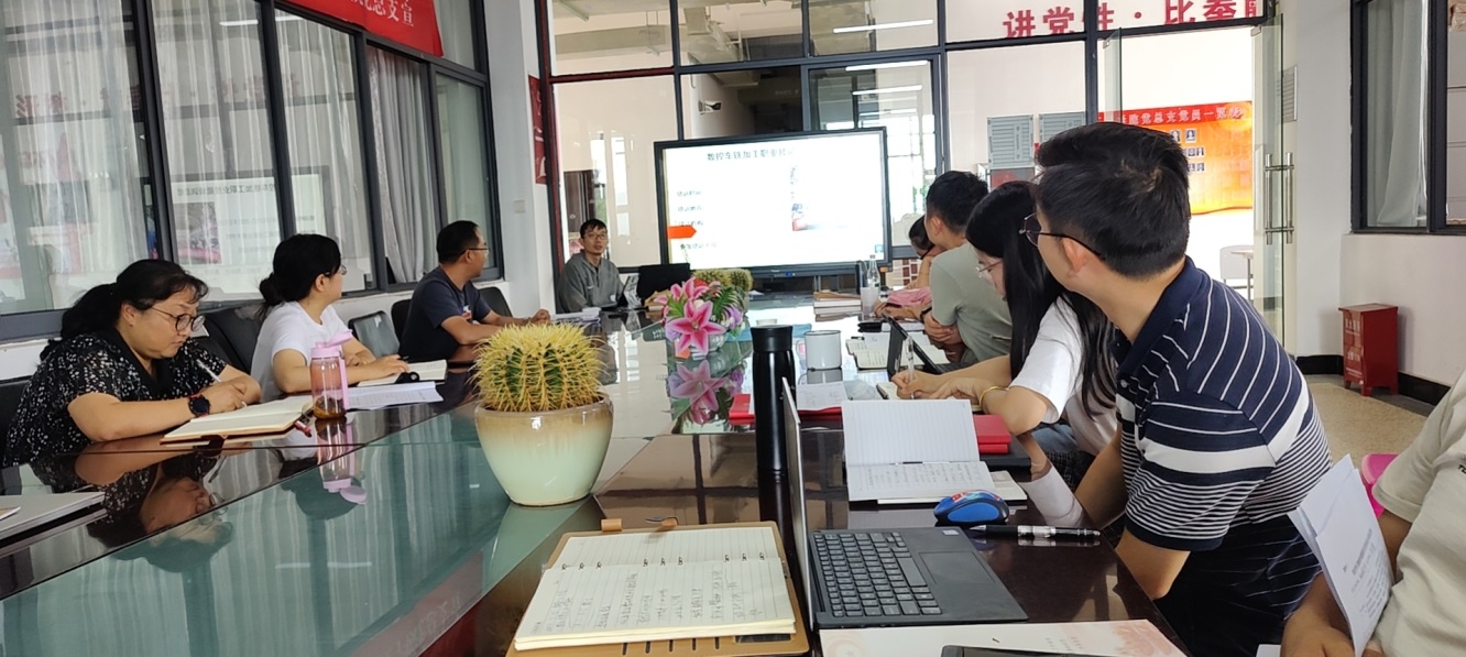 会议第三部分,由本学期外出培训的教师分享培训心得,大家就思政课程建设、数控车铣加工、增材制造专业建设、工业机器人应用编程等内容畅所欲言,各抒己见,展开了激烈地讨论。