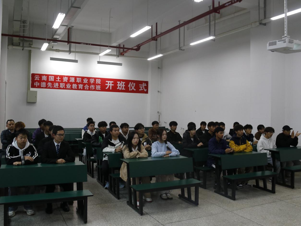 12月6日上午,云南国土资源职业学院中德先进职业教育合作项目班开班仪式在明尚楼B109举行。教育部中德先进职业教育合作项目组秘书处刘志远,学校副校长齐武福,招生就业处处长李艳以及十大买球的正规网站师生代表共同出席。本次开班仪式由十大买球的正规网站院长张俊妍主持。