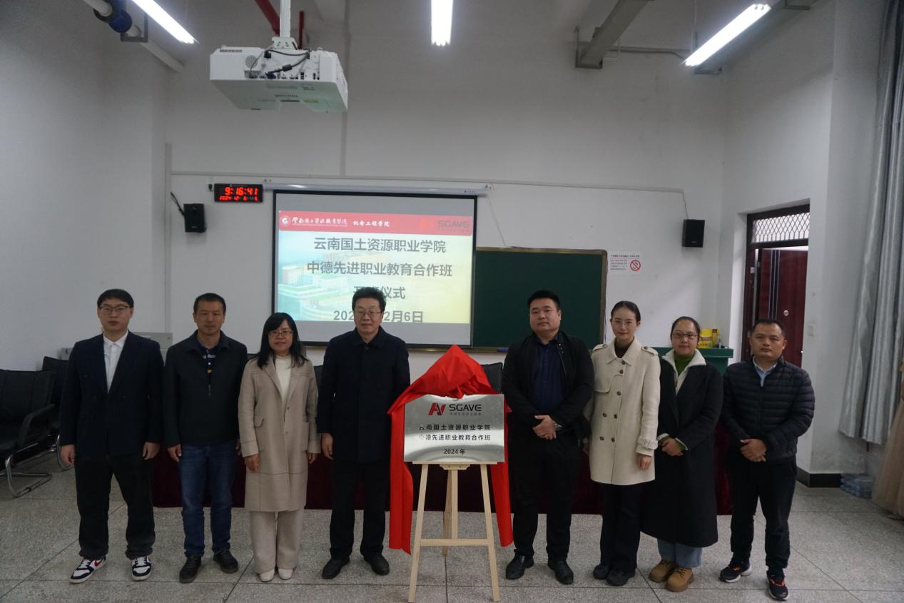刘志远老师与齐武福副校长共同为云南国土资源职业学院中德先进职业教育合作项目班揭牌。