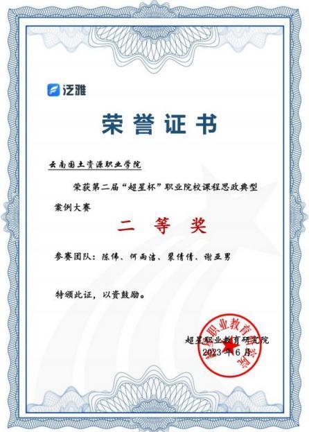第二届“超星杯”职业院校课程思政典型案例大赛一等奖和二等奖