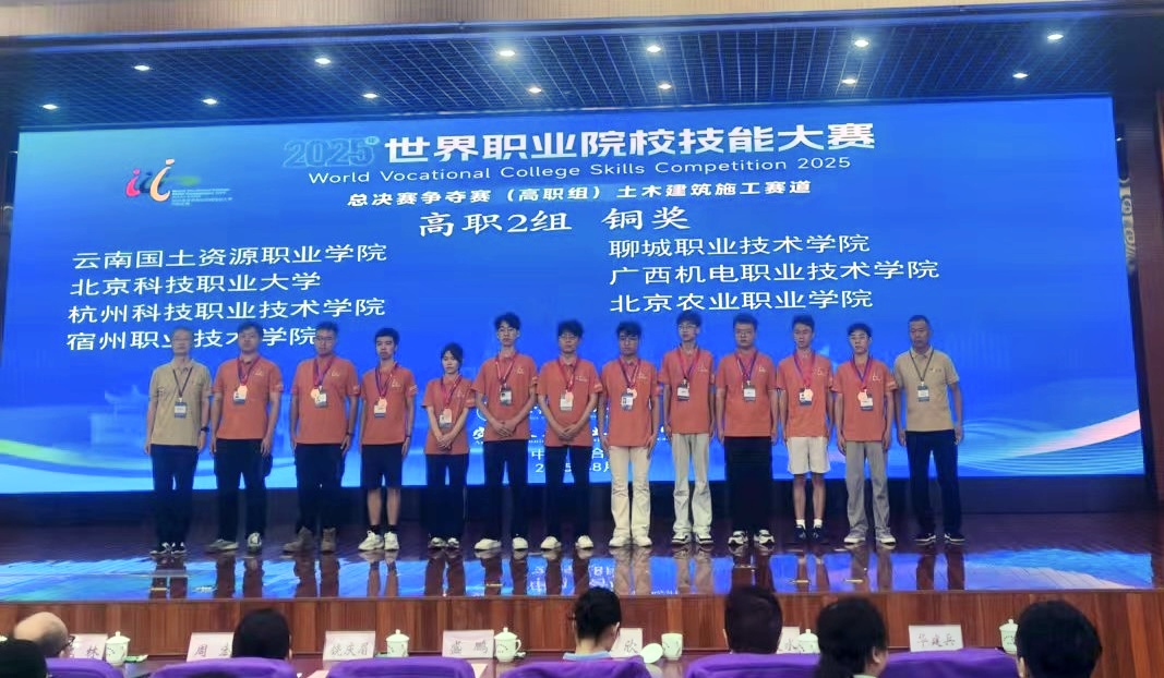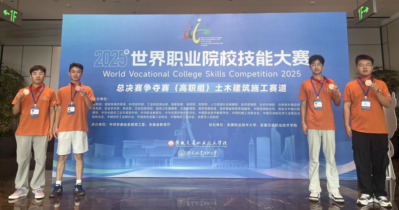 8月27日至30日,由安徽职业技术大学与安徽交通职业学院联合承办的2025年世界职业院校技能大赛总决赛(高职组)土木建筑施工赛道比赛圆满落幕。由十大买球安全消防专业群选派的学生团队(李钧杰、孔令富、殷良霄、邱洪键)在冯溪阳、刘芳芳老师的指导下,首次参赛勇夺大赛铜奖,实现十大买球在该项国际赛事土木建筑施工赛道中的历史性突破!