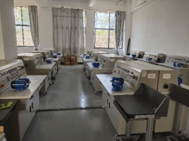 电气教研室的实训室有金工实训车间、电工综合实训室、PLC实训室、现代电气控制系统安装与调试实训室、电机维修及控制实训室,实训室建筑面积将近1000平方米左右,以下为部分实训室照片。