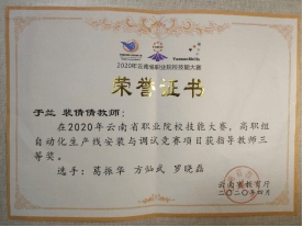 现有副教授2人,高级工程师1人,讲师1,助教2人,学历层次为硕士4人,本科2人。其中双师型教师2人,教师专业与知识结构较为合理,来源于国内多所著名高校,如云南大学、昆明理工大学等,毕业于电气工程、控制理论与控制工程、机械制造及其自动化等专业,是一支专业基础扎实,团结协作,创新进取的队伍。近年来,各教师参与了《常用设备的电气安装、调试与检修》等教材编写;主持和参与省部级、校级科研项目7项;在国际及国内著名期刊发表学术论文10余篇。各教师多次参加全国性的专业学术研讨会,并到知名高校进修,提升自身教学科研水平。除此之外,各教师还多次到企事业单位调研、培训、挂职,积累了丰富的实践教学经验。